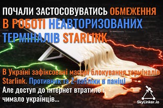 Почали застосовуватись обмеження в роботі неавторизованих терміналів Starlink в Україні (оновлено)