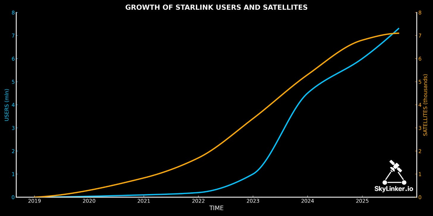 When Starlink transitions to launching v3 satellites with Starship, the balance of power in the entire industry will shift dramatically. The reason is simple — scale. One Starship launch is capable of deploying as much throughput as a dozen Falcon 9 launches, and doing so at a lower cost.